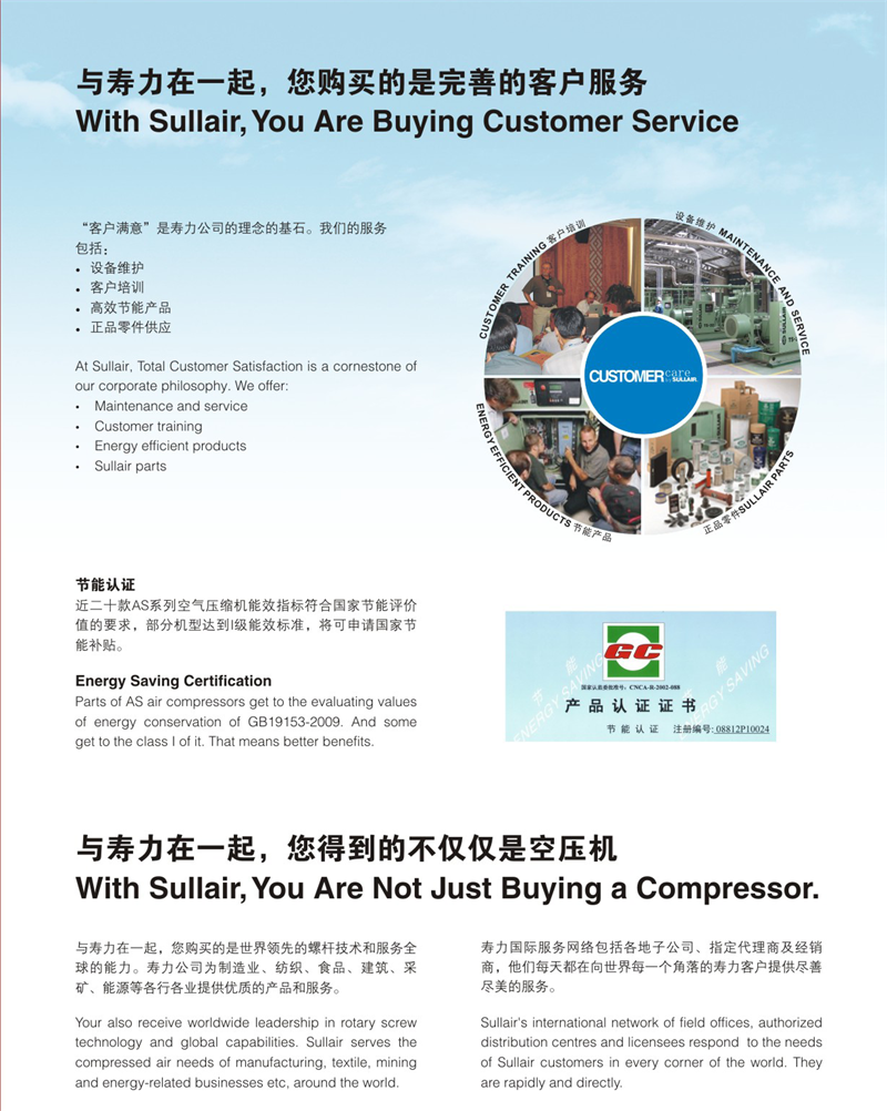 秉承“高質(zhì)量、高服務(wù)、高標(biāo)準(zhǔn)、高信譽(yù)”的客戶服務(wù)理念,已經(jīng)在福建壓縮空氣行業(yè)界打下良好的口碑,是促進(jìn)中國空氣壓縮機(jī)發(fā)展的重要成員