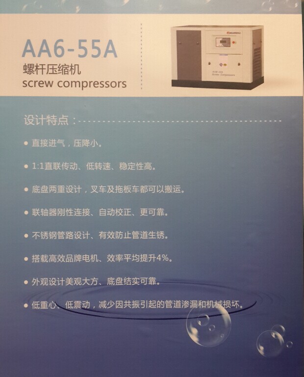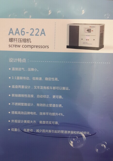 普通工頻螺桿式空壓機(jī),不銹鋼管設(shè)計(jì),不易腐化漏油,1:1直聯(lián)傳動
