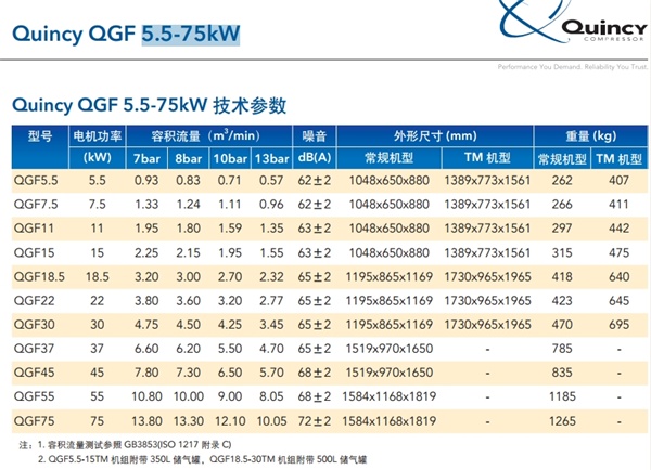 昆西QGF系列螺桿式空氣壓縮機(jī)5.5-75kW